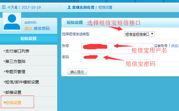 四:登錄進入系統(tǒng)管理后臺-》其他管理-》短信設(shè)置,選擇和填寫相關(guān)短信配置信息,填寫完成保存配置即可。