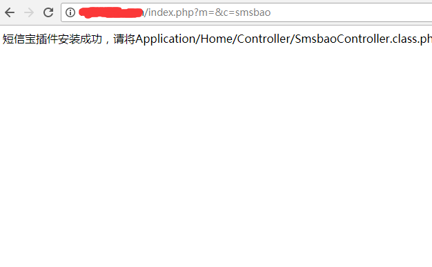 三:在瀏覽器輸入 域名/index.php?m=&c=smsbao 出現(xiàn)短信寶插件安裝成功 表示安裝成功,如果安裝失敗,請聯(lián)系短信寶客服。