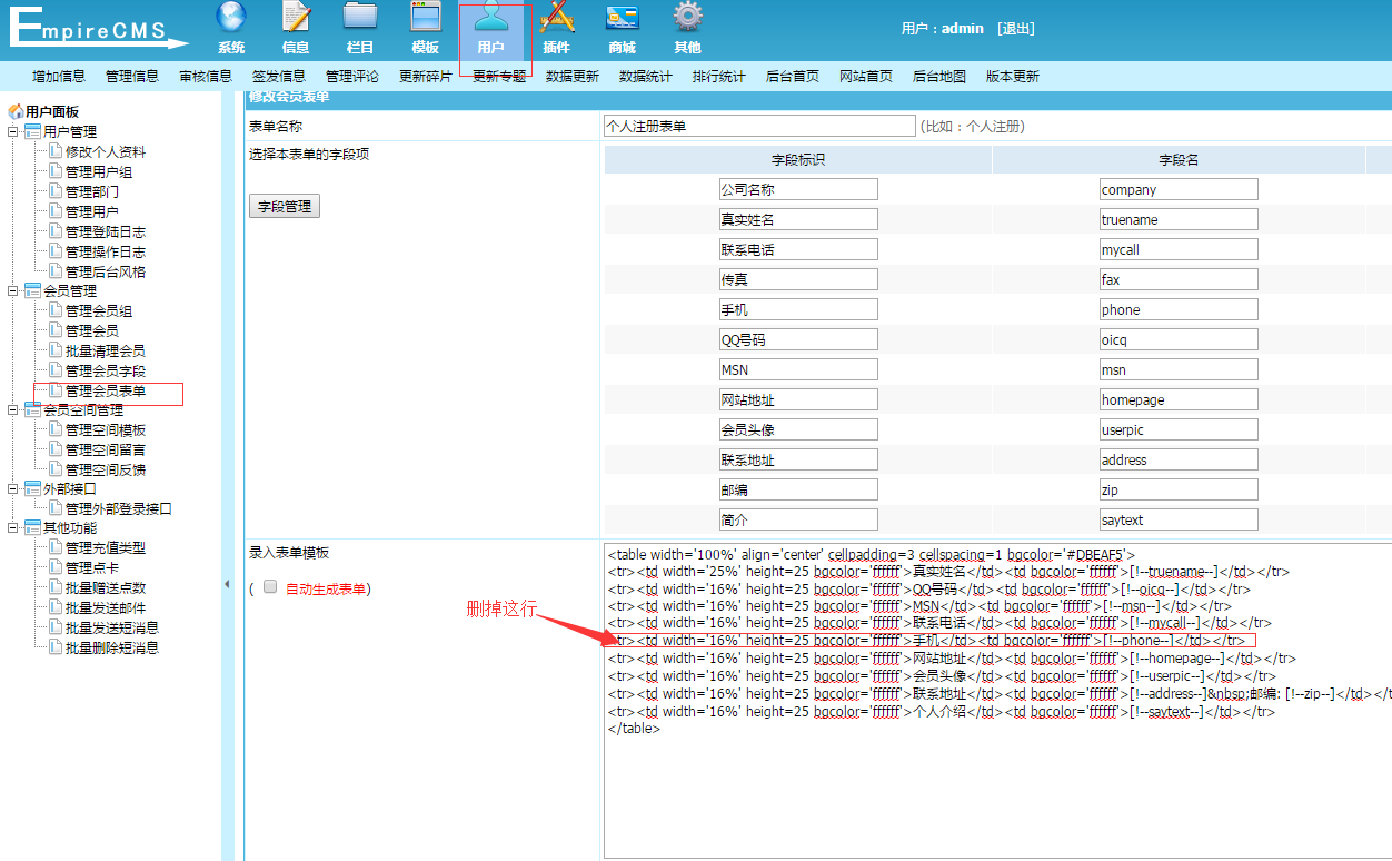 七: 修改: 后臺 -> 用戶 -> 會(huì)員管理 -> 管理會(huì)員表單 -> 個(gè)人注冊表單 -> 修改。