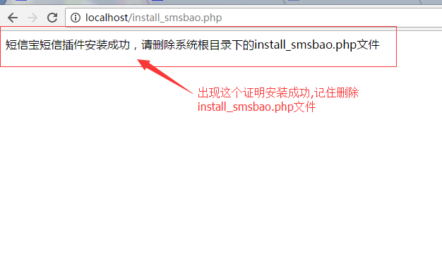 二:插件的安裝:將本插件內(nèi)的文件覆蓋至原系統(tǒng),瀏覽器輸入:域名/install_smsbao.php安裝短信寶短信插件,出現(xiàn)安裝成功提示后請將根目錄下的install_smsbao.php刪除。