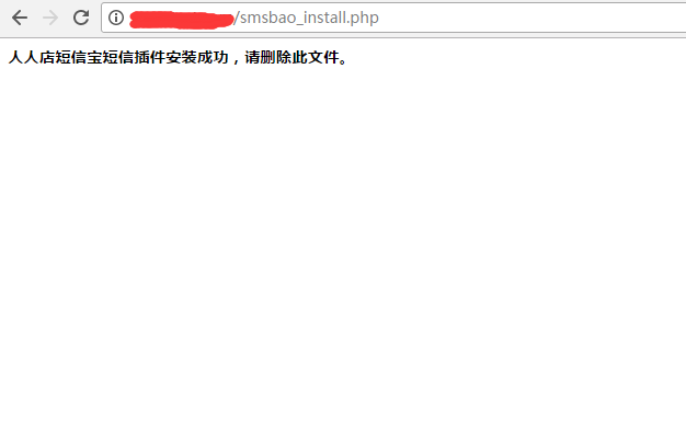三:把下載好的人人店短信寶插件程序解壓覆蓋到網(wǎng)站根目錄,訪問 你的域名/smsbao_install.php(www.xxx.com/smsbao_install.php),出現(xiàn)人人店短信寶插件安裝成功,請(qǐng)刪除此文件,插件安裝成功,如果安裝失敗,請(qǐng)聯(lián)系短信寶客服。