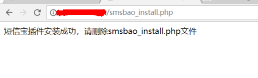 三:在瀏覽器輸入 你的域名/smsbao_install.php 如: www.xxx.com/smsbao_install.php 提示下列文字即為安裝成功。如未提示或有報錯情況請聯(lián)系短信寶客服。