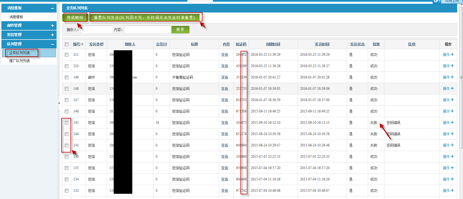 Q:為什么已經(jīng)啟用了短信寶短信平臺的配置,隊(duì)列發(fā)送還是失敗,但是選擇直接發(fā)送是成功的呢?