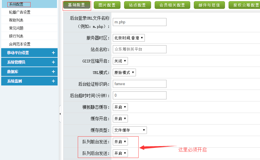 登入后臺 -> 系統(tǒng)設(shè)置 -> 基礎(chǔ)配置 -> 開啟前后臺隊(duì)列。如圖: