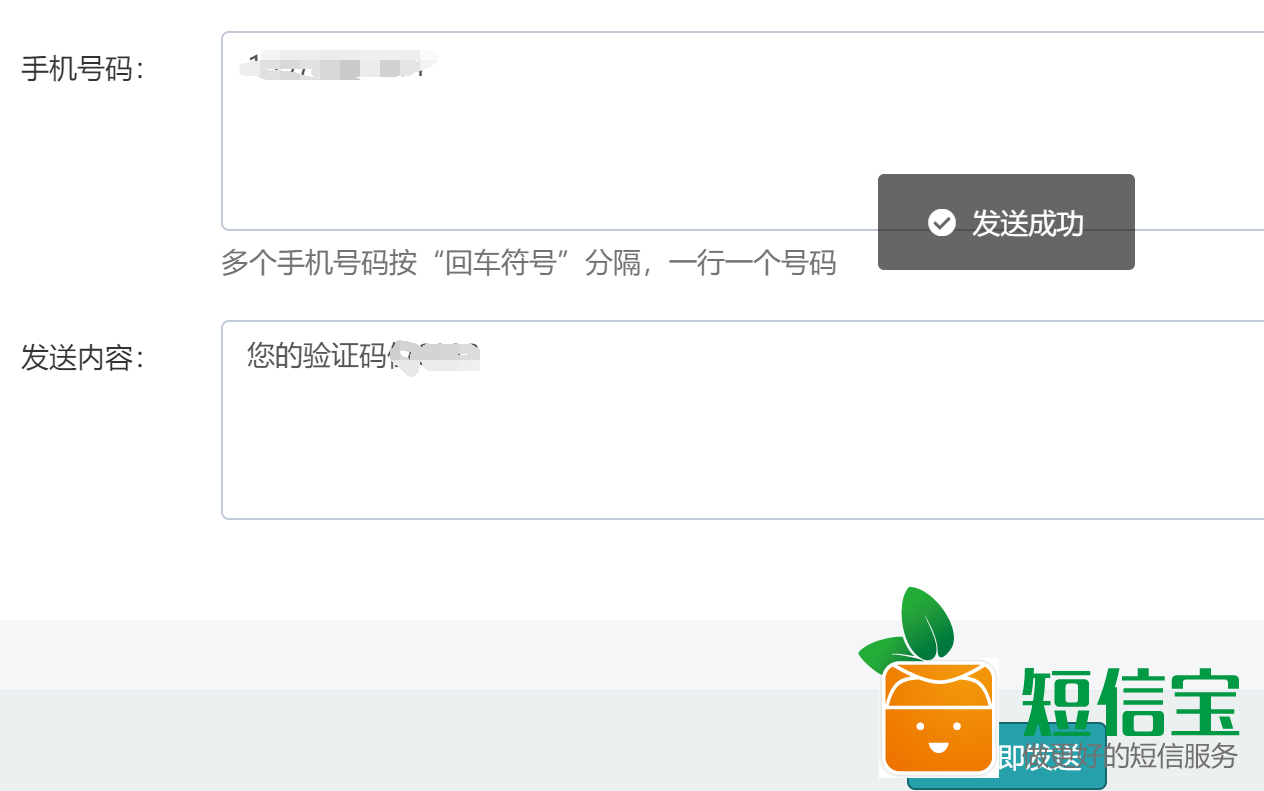 經(jīng)過(guò)上面的替換,短信寶的短信平臺(tái)已經(jīng)替換成功了,可以正常使用了。進(jìn)行測(cè)試發(fā)送: