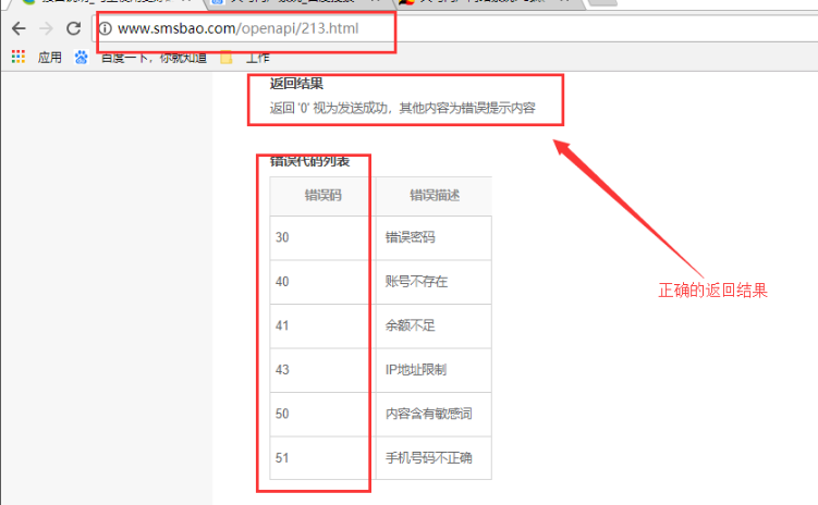 地址發(fā)送短信的時候就會返回“30”這個數(shù)字,而在我們的短信寶平臺的開發(fā)文檔中就有說明返回結果的錯誤代碼列表。
